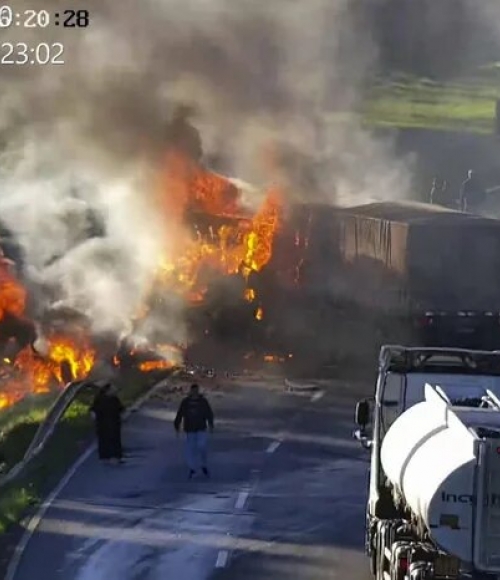 Duas pessoas morrem em acidente entre caminhões que provocou incêndio na BR-386