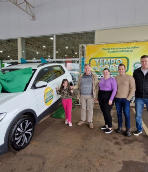 O presidente Walter Vontobel entregou a T-Cross zero quilômetro à ganhadora Heloísa Klein Colognese, que esteve acompanhada dos pais, Cristina e Daniel Colognese. Moradora do bairro Vicentinos, a família é cliente do Cotrisal Atacadista e relatou que