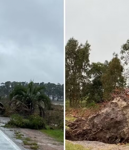 Ocorrência foi registrada em Santa Vitória do Palmar; há bloqueios em rodovias e danos na rede elétrica.