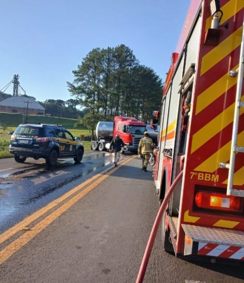 Acidente entre caminhonete e bitrem interrompe fluxo na BR-386 em Carazinho