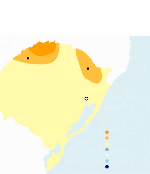 Entre as capitais, a temperatura mínima prevista é de 8°C, em Porto Alegre; Já a máxima está prevista para Florianópolis, com 21°C. A umidade relativa do ar varia entre 30% e 100%.