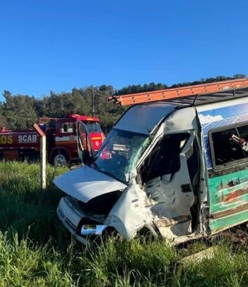 Condutor da van precisou ser desencarcerado das ferragens e está internado em estado grave