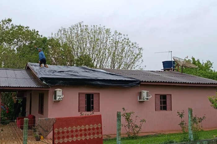 Fortes ventos destelham casas e galpão em Palmeira das Missões; Defesa Civil avalia se houve microexplosão