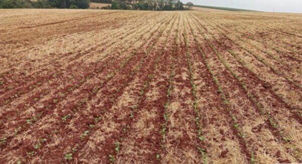 A germinação e a emergência ocorrem de maneira adequada, as plântulas estão vigorosas e os estandes, uniformes. A ocorrência de temperaturas amenas tem retardado o desenvolvimento vegetativo, deixando as plantas com porte reduzido e entrenós curtos, mas com folhas bem formadas e sadias. A umidade excessiva, em alguns momentos, tem exigido atenção quanto à compactação e à crosta superficial do solo, sobretudo em áreas de textura mais argilosa. Porém, não há impactos relevantes até o momento.