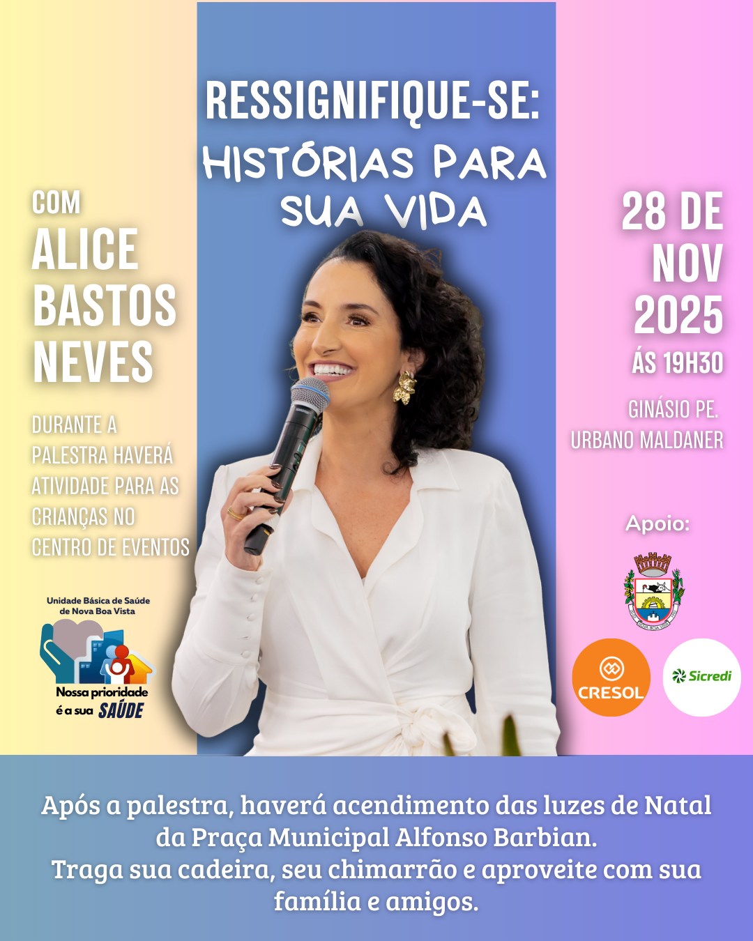 Na próxima sexta-feira Alice Bastos Neves estará em Nova Boa Vista!