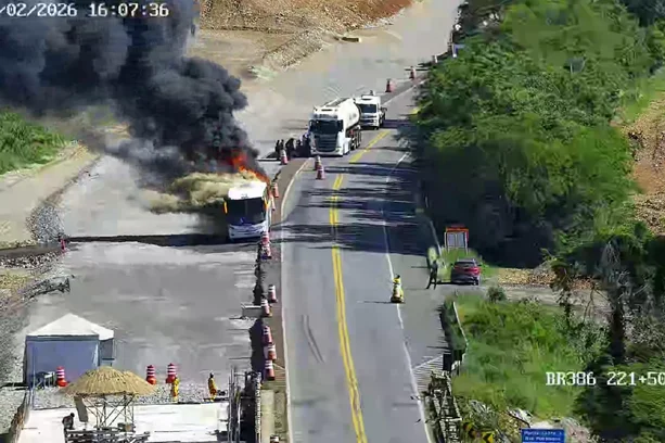 Segundo a Polícia Rodoviária Federal (PRF), todos os ocupantes conseguiram sair a tempo e não há registro de feridos. Os trabalhadores seguem no local e aguardam a orientação da empresa. As causas para o incêndio ainda são apuradas.