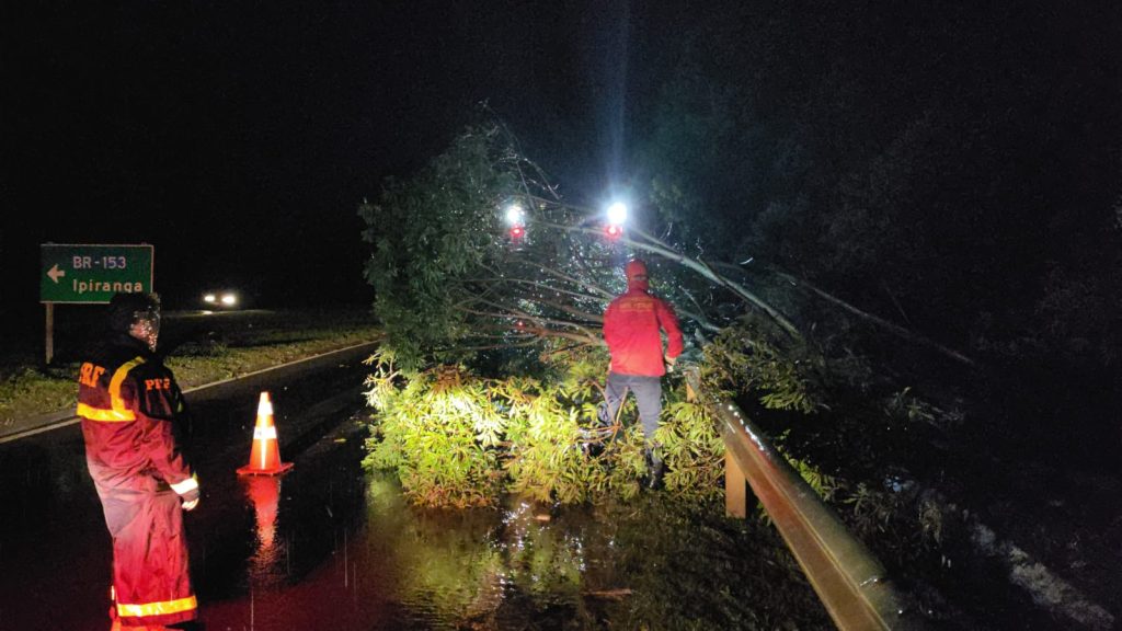 A tempestade, acompanhada de rajadas de vento, provocou a queda de dezenas de árvores, bloqueando total ou parcialmente o trânsito. Para restabelecer o fluxo, diversas equipes da PRF em Sarandi, Seberi e Passo Fundo trabalharam de forma coordenada na desobstrução de trechos críticos nas rodovias BR-386, BR-285 e BR-158.