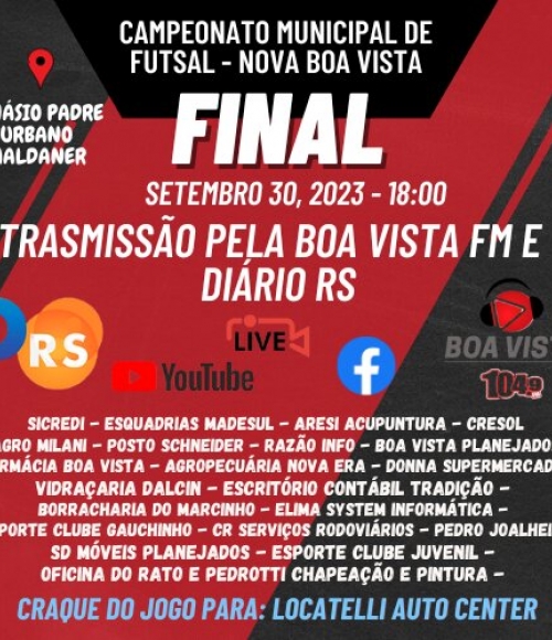 23º CAMPEONATO MUNICIPAL DE FUTSAL DE NOVA BOA VISTA